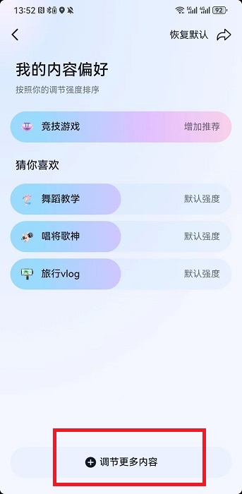 2、功能界面可以看到一个【内容偏好】功能, 点击功能进入到界面自自重;