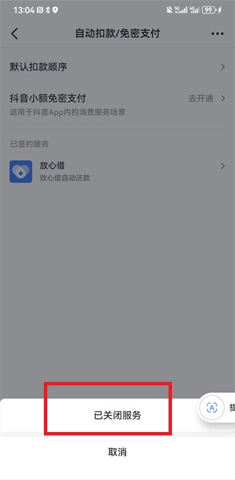 6、点击过后就可以看到下方会弹出【关闭服务】的选项,点击关闭免密支付即可。