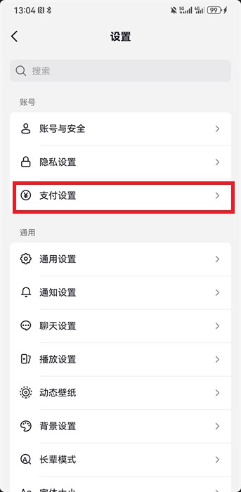 3、设置界面中我们就可以看到【支付设置】进入到其功能页面;