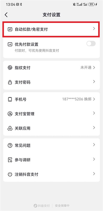 4、该页面中用户需要点击打开【自动扣款\免密支付】功能,进入其页面去进行关闭;