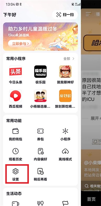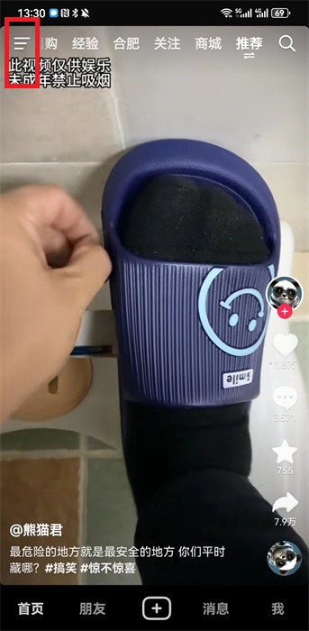 1、在抖音播放界面中,点击其中的左上角的【三】,进入到多功能界面之中;